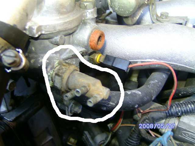 first one is a temp sensitave vacume tree, used for things like egr valves ect for pollution control. second is a temp sensor all falcons need a working one of these as it to is a emmisions control piece . it tells ecu what temp engine is and how much fuel to inject allong with the other components of the efi system. correct me if im wrong but it also operates the gauge