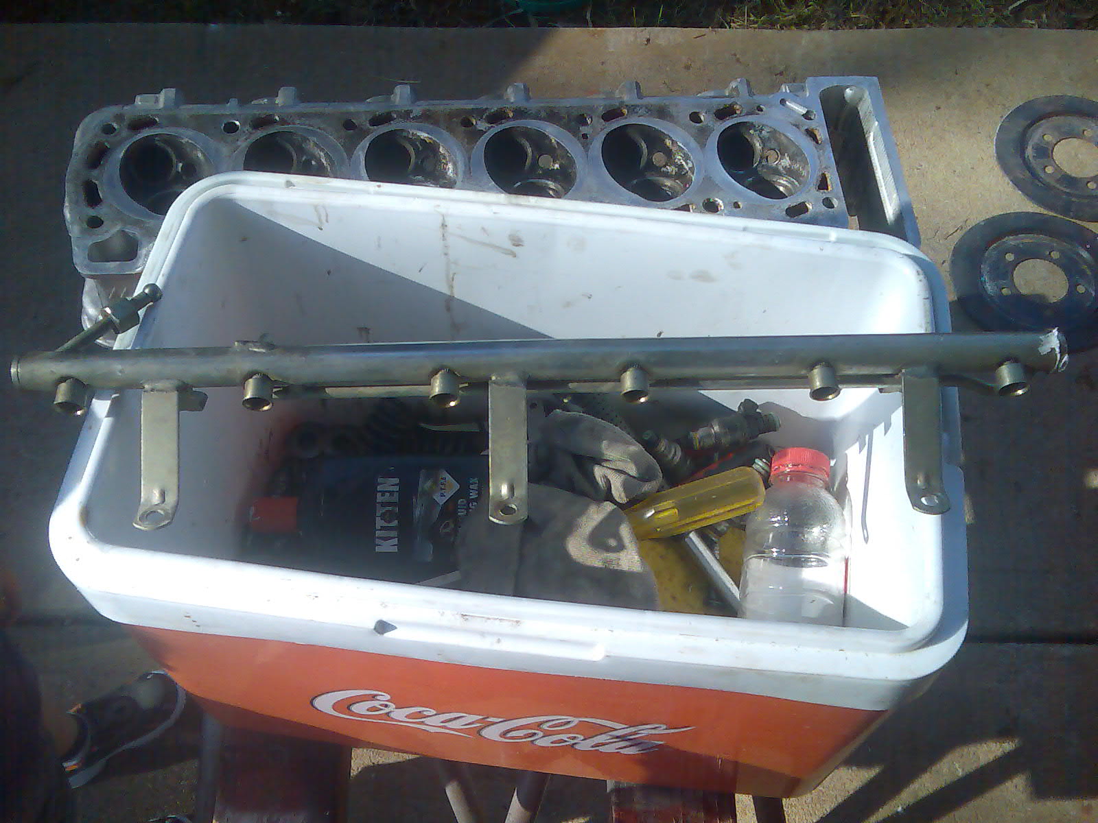 It took me a couple of hours again cursing and etc and getting the compressor to sit right etc etc got them off yesterday used a magnectic screwdriver to grab the colites, and after i just cleaned the head up some more and i got bored and started to polish a ED fuel rail i had laying around..